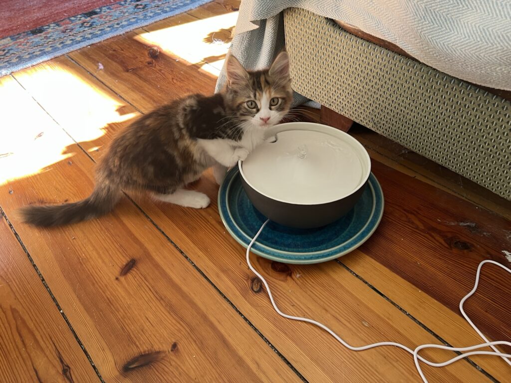 Trotzdem sind meine Leute ach so besorgt. Um Coco. Und kaufen eine Flasche stilles Wasser. Das Gute. Das Teure. Das Französische. Was sie sich selbst nicht gönnen. Nun, sie lassen es Coco zukommen. Es habe weniger Nitrite. Und es sei pflegend für den jungen Darm. Der Coco. Sagen sie. Und füllen es in den Trinkbrunnen. Really: Trinkbrunnen – hatte ich das schon erwähnt? Dass sie so etwas für sie kauften?