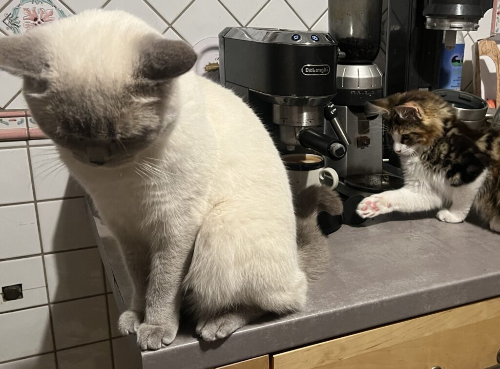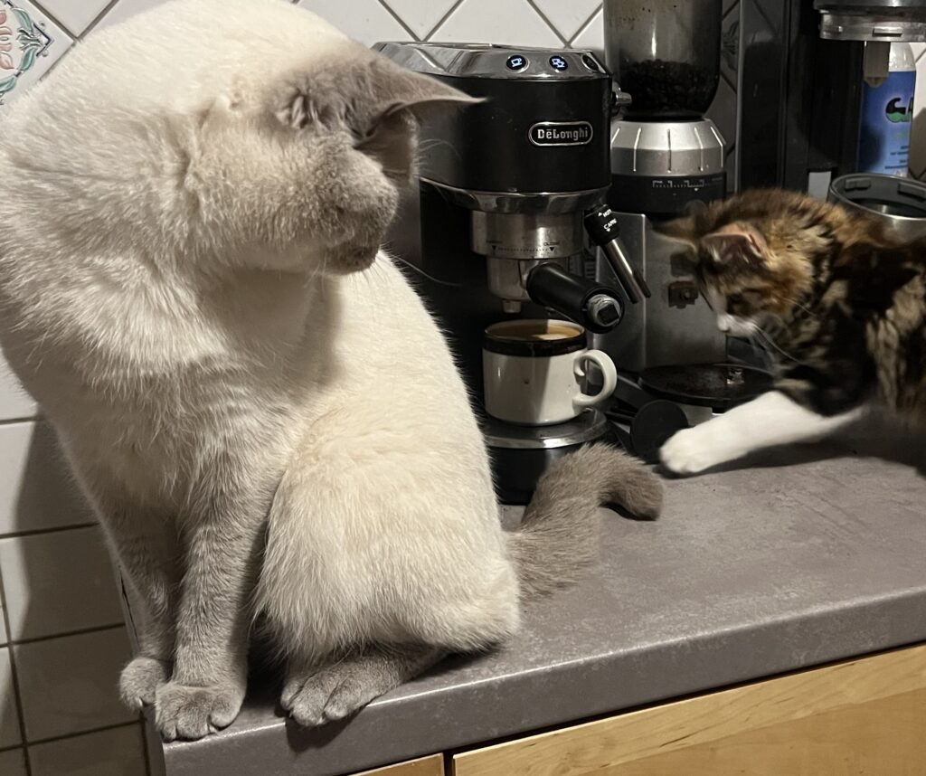 Meine Trance wird abrupt beendet. Coco springt neben mich. Und nimmt meinen wedelnden Schweif ins Visier. Immer wieder haut sie dagegen. Beißt. Ich finde es ätzend. Will aber keine Eskalation. Und denke nur so: Meine Hoffnung lasse ich mir nicht nehmen. Blicke in den düsteren Himmel: Und sehe sie, will sie sehen, die weiße Taube, die mich umarmt. Sorry, für den schwülstigen Kitsch. Aber heute fühle ich mich nun mal so.