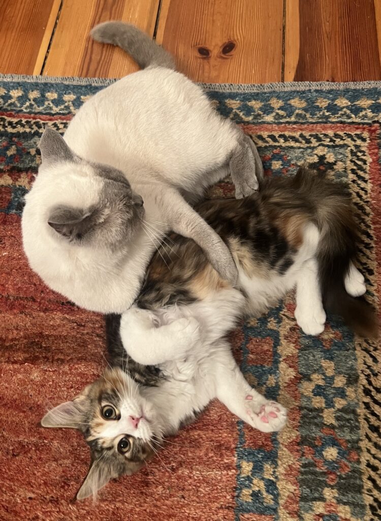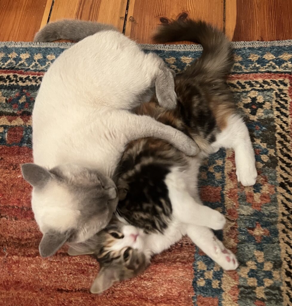 Und denke so: Ja, wir zeigen Zuneigung. Auch zu euch Menschen. Anders eben. Aber wir zeigen es. Ihr versteht es nur nicht. Aber irgendwie müsste ihr es doch merken. Dass wir euch vermissen. Sogar lieben. Warum auch immer. So: Genug gesülzt. Ich kuschle mich wieder an Coco. Sie ist entspannt. Ich auch. Ein. Großer. Tag. Historisch. Vielleicht. Sagt der Hauptstadtkater. Der über euch wacht. Chillt.