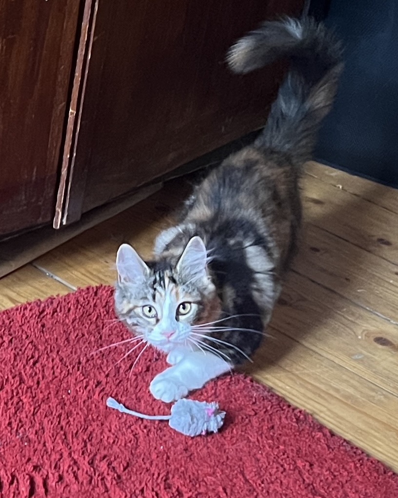 Es ist alles so tragisch. Coco jagt. Die Maus. Zum Glück ein Spielzeug. Ich hasse Tauben. Wir sind Raubtiere. Und Pazifisten. Sagt der Hauptstadtkater. Der über euch wacht. Chillt.