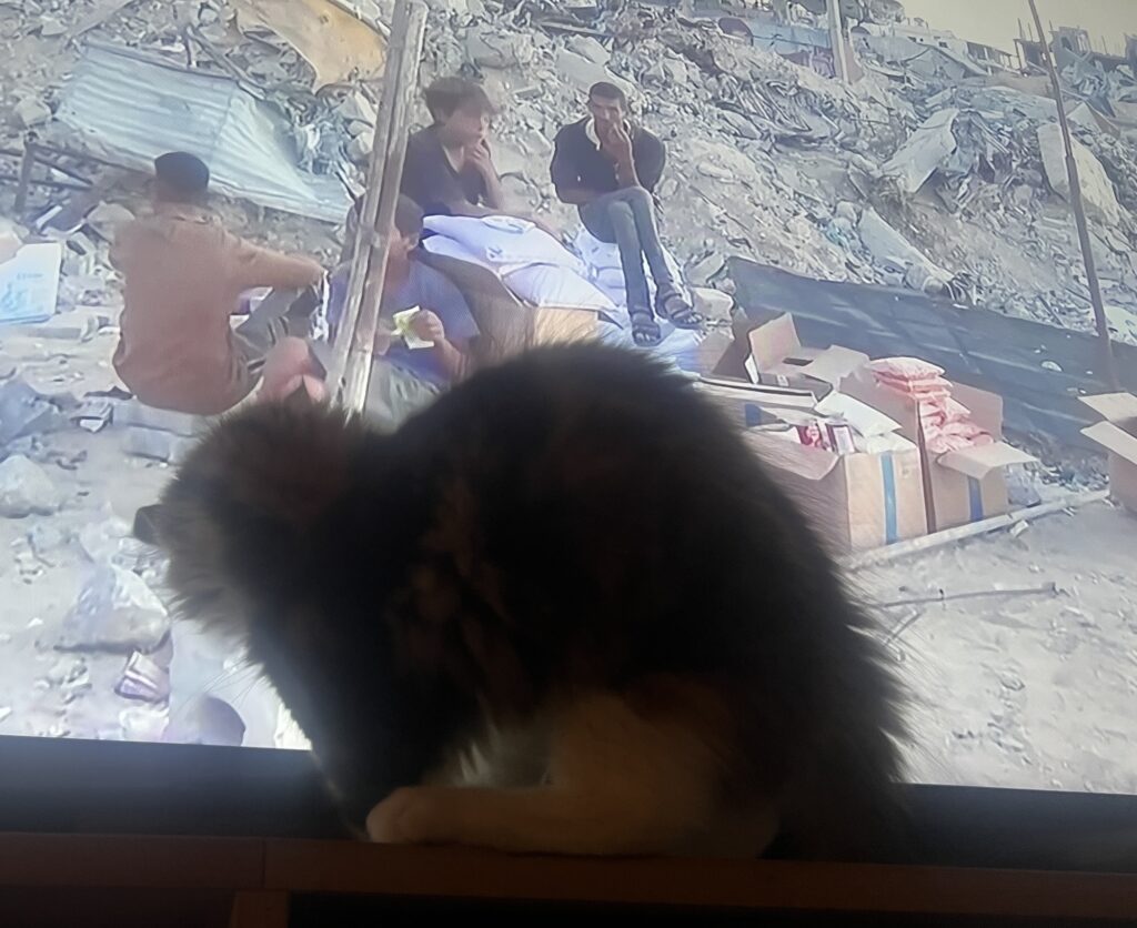 Coco klebt am Bildschirm. An den Jubelnden, quasi. Soll sie erst mal deren Glücksgefühle aufsaugen., Euphoria. Tut auch mal gut. Depri kommt schnell genug zurück. Coco spürt es. Ich spüre es. Also: Moment genießen. Ist historisch. Sure. Sagt der Hauptstadtkater. Der über euch wacht. Chillt.