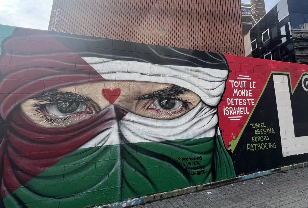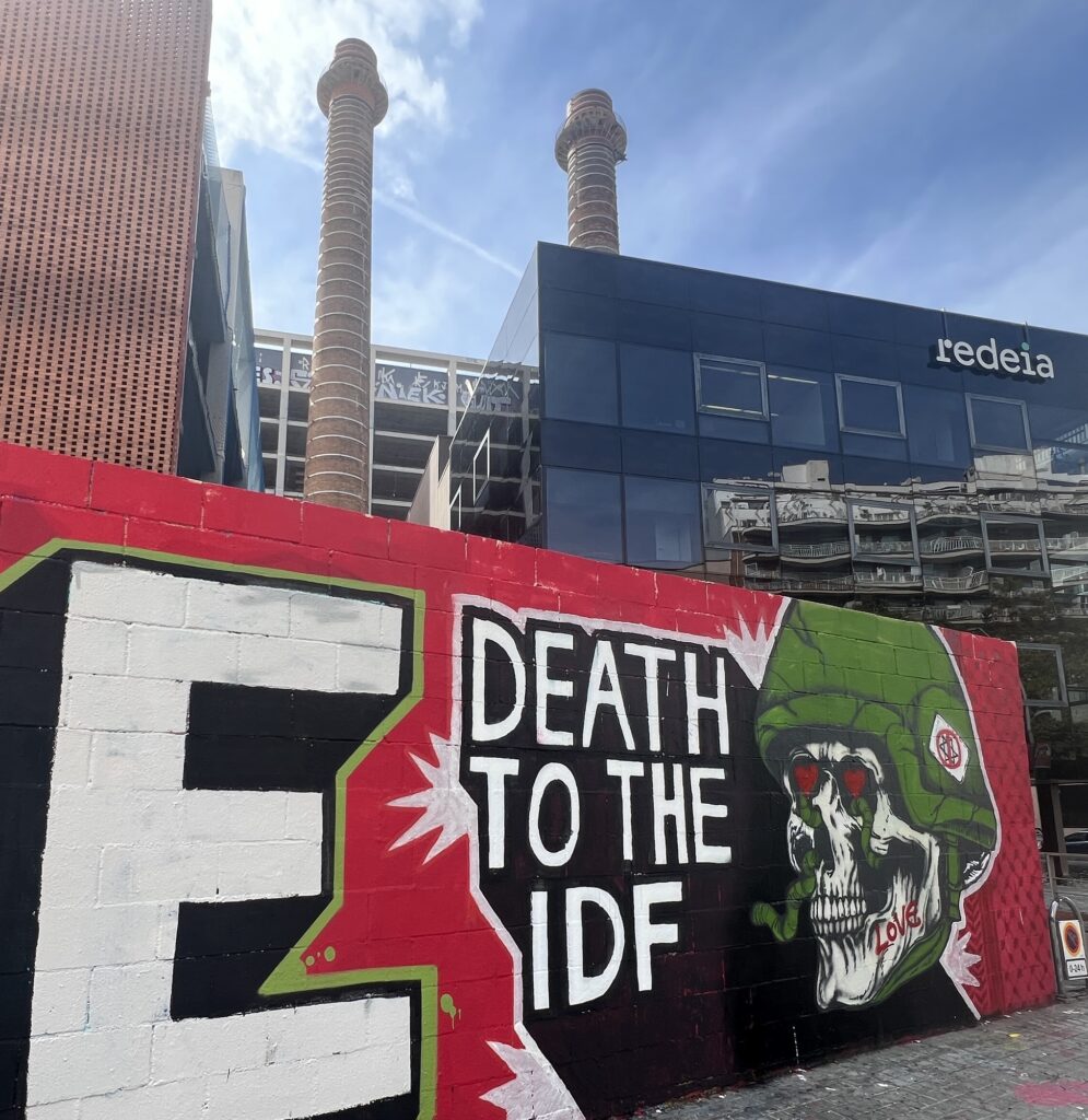 Und meine Leute sehen überall in der Stadt: Zeichen, die die Unterstützung der Palästinenser fordern. Graffiti mit leidenden Palästinensern und Hassbotschaften gegen Israel. Weil sie sich mit den Palästinensern verbunden fühlen – Menschen, die einen eigenen Staat wollen und sich unterdrückt fühlen. Wie eben die Katalanen auch.