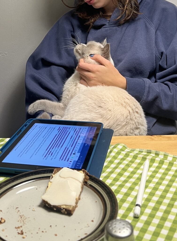 Und falle ins Delirium, als meine Bruna mich krault. Und mit ihrer anderen Hand tippt. Notizen für die Erdkundearbeit kommende Woche. Über den Klimawandel. Ganz anderes Thema.