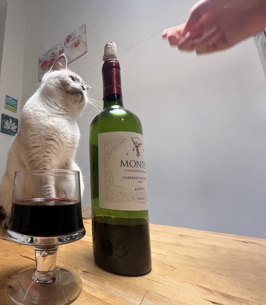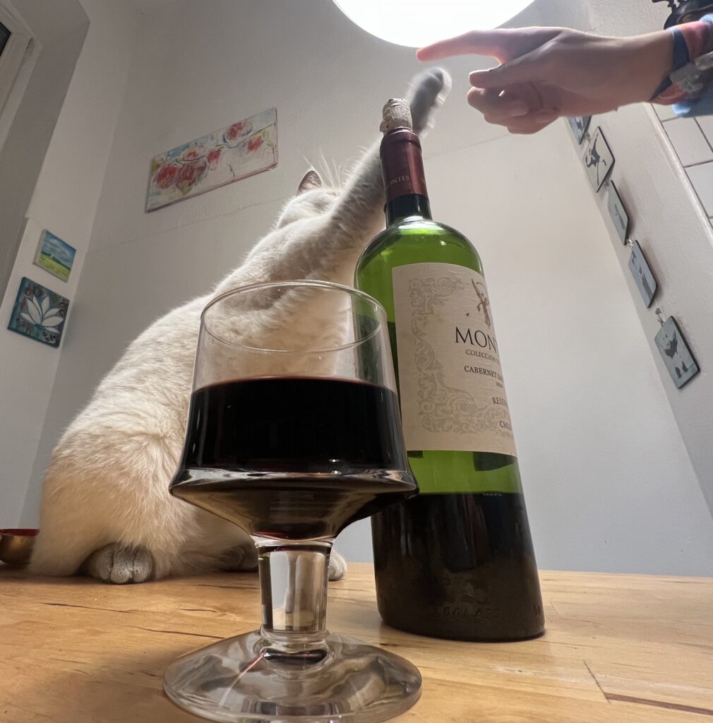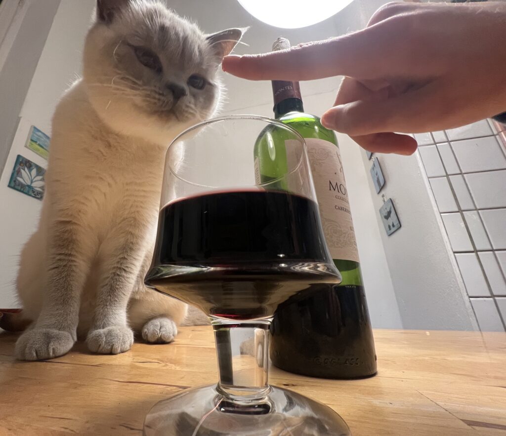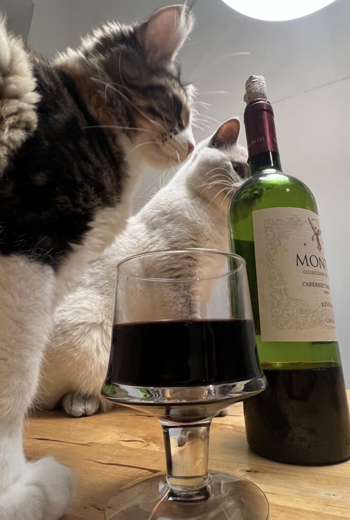 Manipuliere meine Leute. Die mir immer mehr Leckerli geben. Weil sie denken, dass ich ansonsten nicht hinter dem Weinglas posieren würde. Dessen Duft ich nun doch goutiere. Ich schwebe. Euphoria. Aber das müssen sie ja nicht wissen. Sagt der manipulierte manipulierende Hauptstadtkater. Der über euch wacht. Und jetzt: Chillt, Leute.