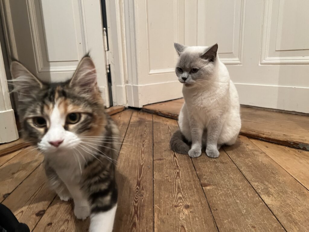 Ach Mensch, denke ich so. Verheerend. Setze mich in Hauptstadtkater-Pose. Wie von Felix gewünscht. Kassiere die Leckerli ab. Mehr als gedacht. Lasse generös Coco profitieren. Und denke so: Klar, ist auch so was wie Bestechung. Aber für den guten Zweck. Für Fotos, gegen Hunger. Win-Win. Sagt der unbestechliche Hauptstadtkater. Der über euch wacht. Und jetzt: Chillt, Leute.