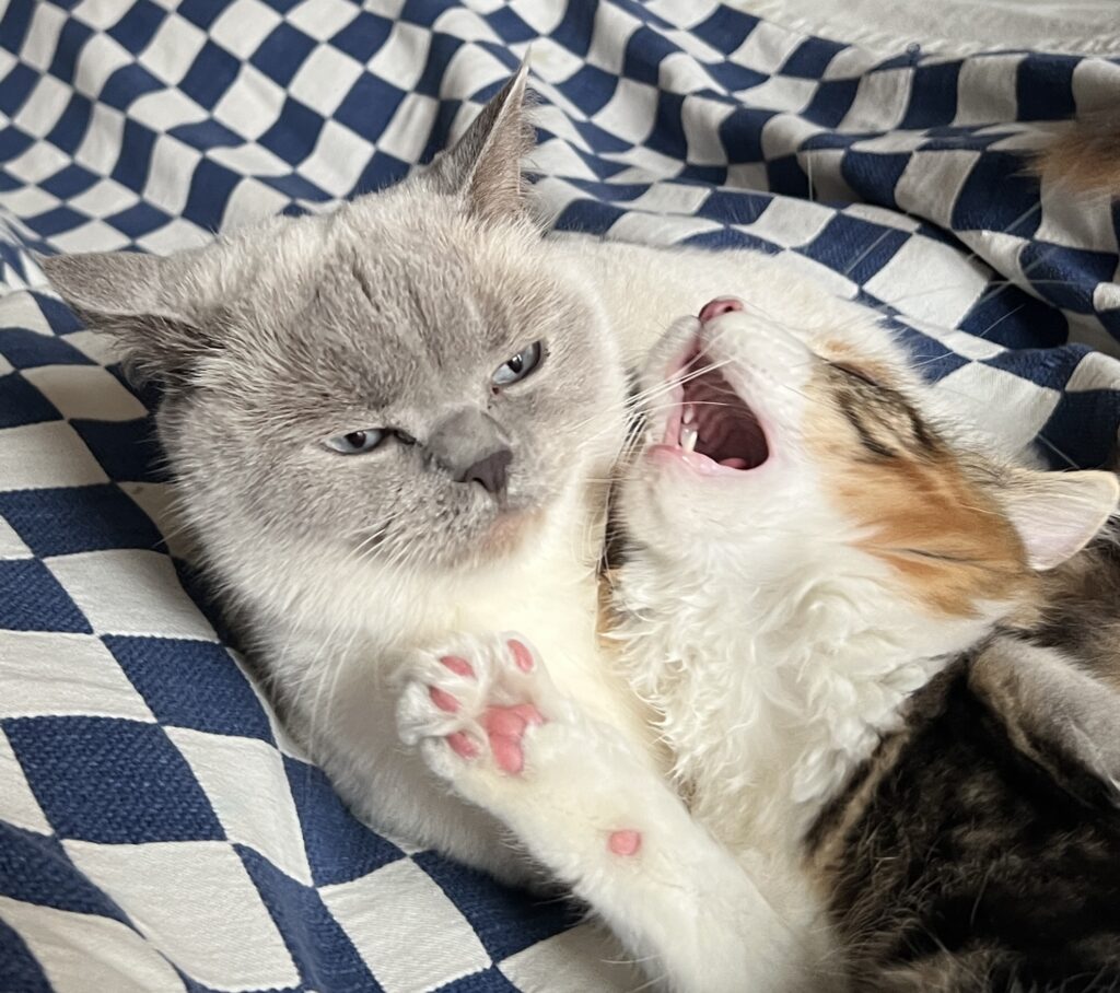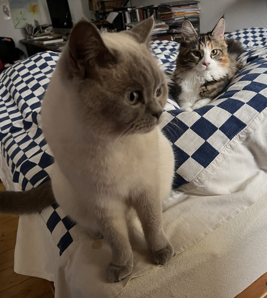 Und ich denke so: Puuh, also, auch hier – alles ziemlich unheimlich. Und heimlich. Dazu kommt noch die Sperrung des Flughafens – wegen Drohnenalarms. Alles düster. Neblig. Irgendwie krank. Mir ist kalt. Ich kuschle mich an Coco. Kullere mich mit ihr. Spüre Vertrauen. Wärme. Stärke. Sagt der furchtsame Hauptstadtkater. Der gerne über sich wachen ließe. Und jetzt: Passt gut auf. Und chillt. Leute.