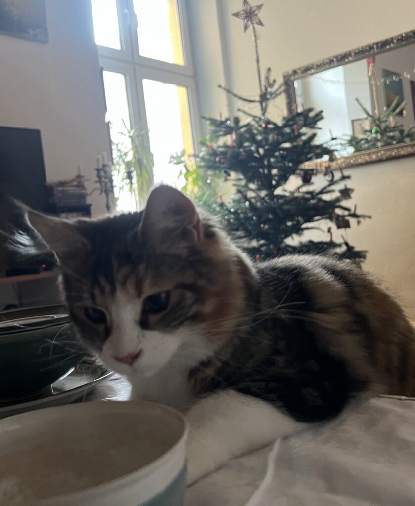 Hauskatzen wie wir. Sind natürlich zugleich auch Tischkatzen. Weil Tische das natürliche Äquivalent zu Bäumen draußen sind. Denke ich so. Als ich Coco beobachte. Wie sie auf den gedeckten Tisch kraxelt. Und wartet: Auf Fisch in Soße.