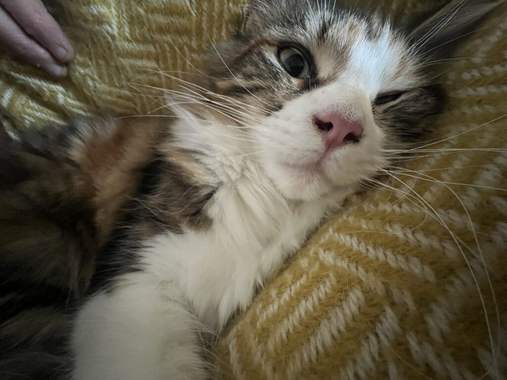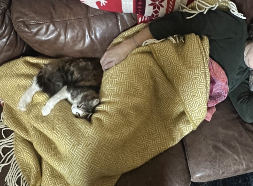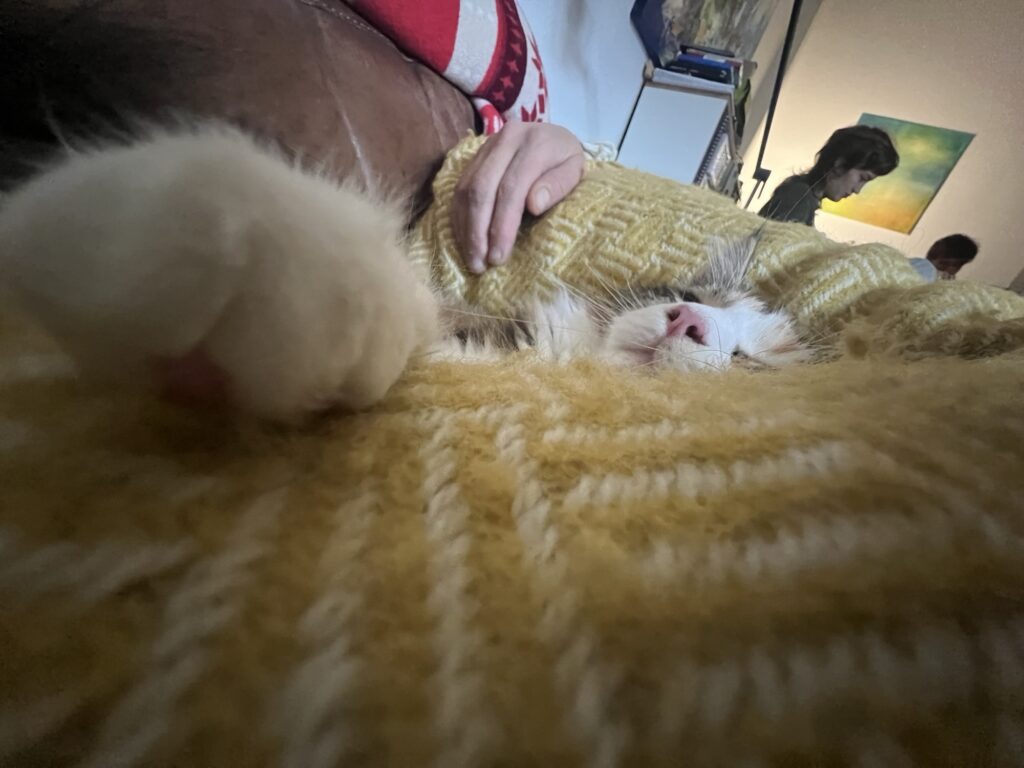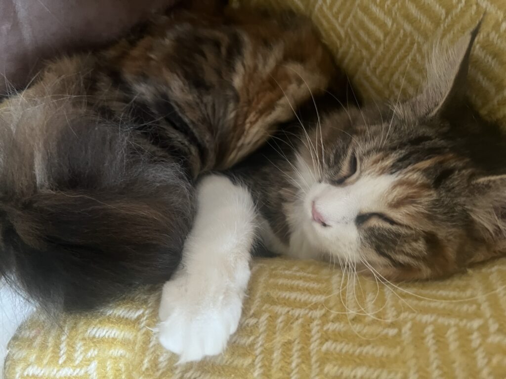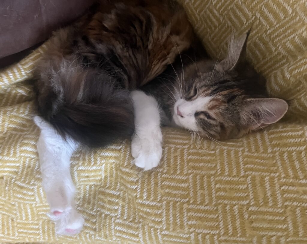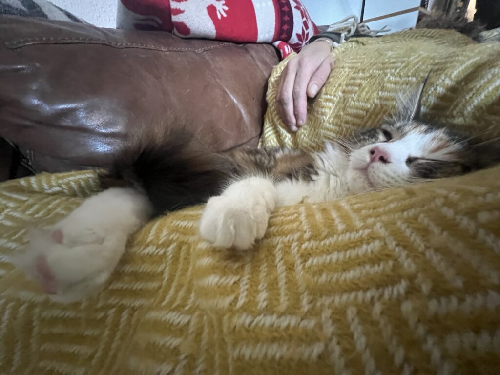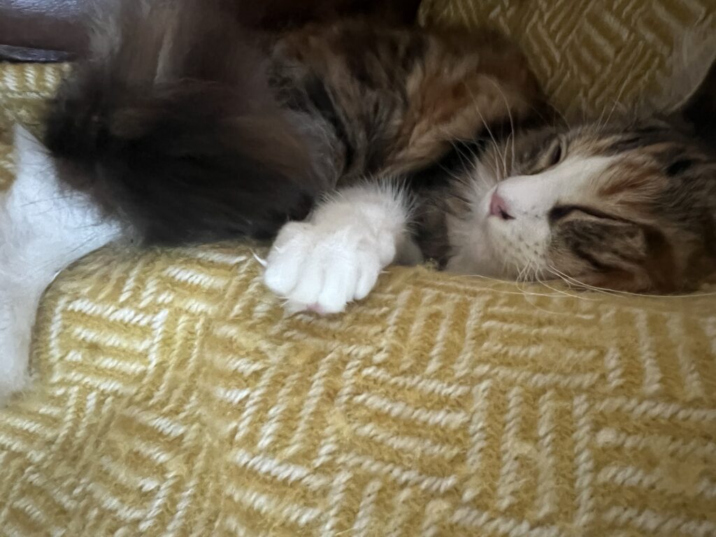 Trost ist angesagt. Zusammenrücken. Einander spüren. Katzenspezialität. Katerspezialität. Denke ich so. Und bin froh, dass ich helfen kann. Ablenken kann. Meine Bruna anschnurre. Und sie zum Lächeln bringe. Während Coco aufs Sofa springt. Und sich auf die dort ruhende Laura legt. Energie gegenseitig übertragen. Hilft. Sagt der erschütterte Hauptstadtkater. Der über euch wacht. Und jetzt: Versucht zu entspannen. Und chillt, Leute.