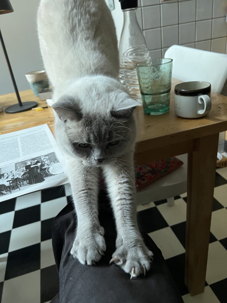 Es war einmal ein weißer Kater. Namens Dorian. Der eine Berliner Großstadtfamilie bespielte. Und tatsächlich – wie Menschen es beschreiben würden – vor Eitelkeit triefte. Der aber auch wie alle Kater – und auch Katzen – äußerst sensibel auf seine Umwelt reagierte. Und so auch immer wieder erstaunt war, das Erstaunen der Menschen darüber wahrzunehmen. Er wusste: Je rätselhafter er für sie, desto verliebter sie in ihn. Cringe. Der Mensch. Dachte Dorian so. Und bewunderte sich. Im Spiegel.