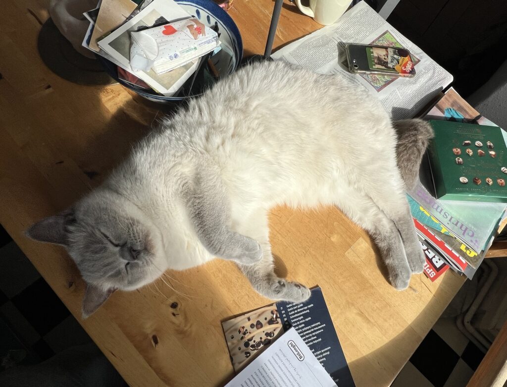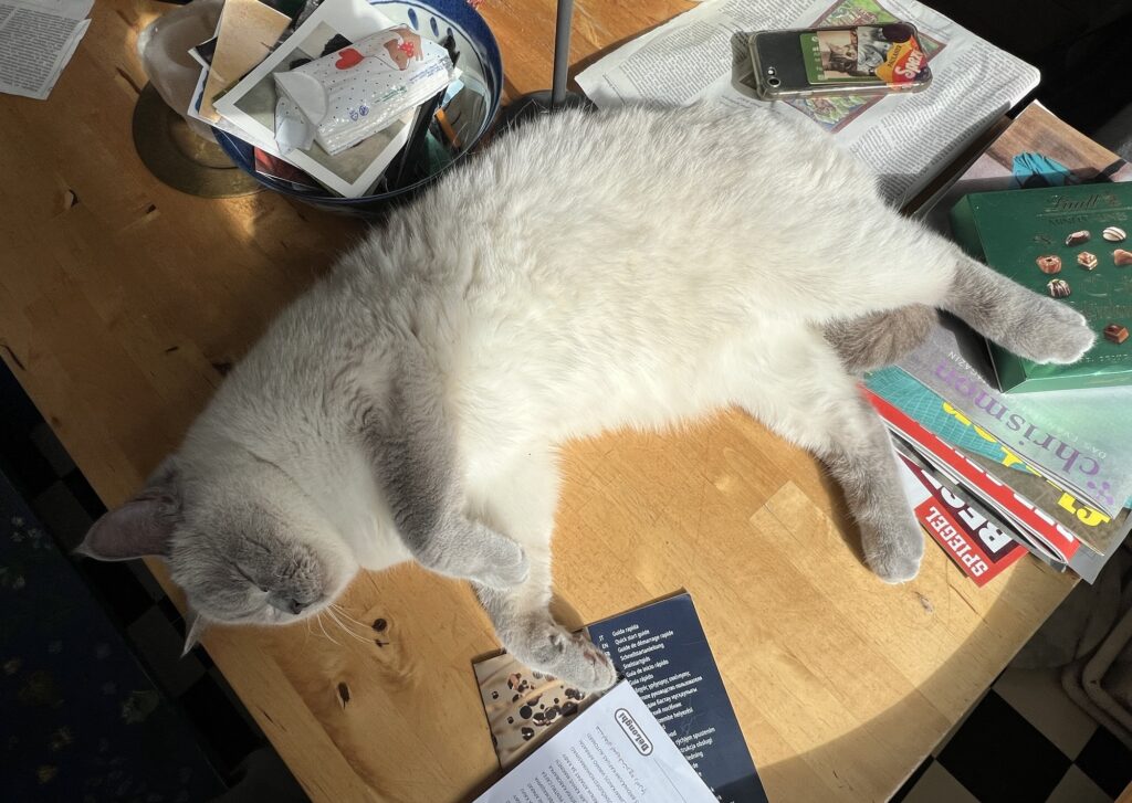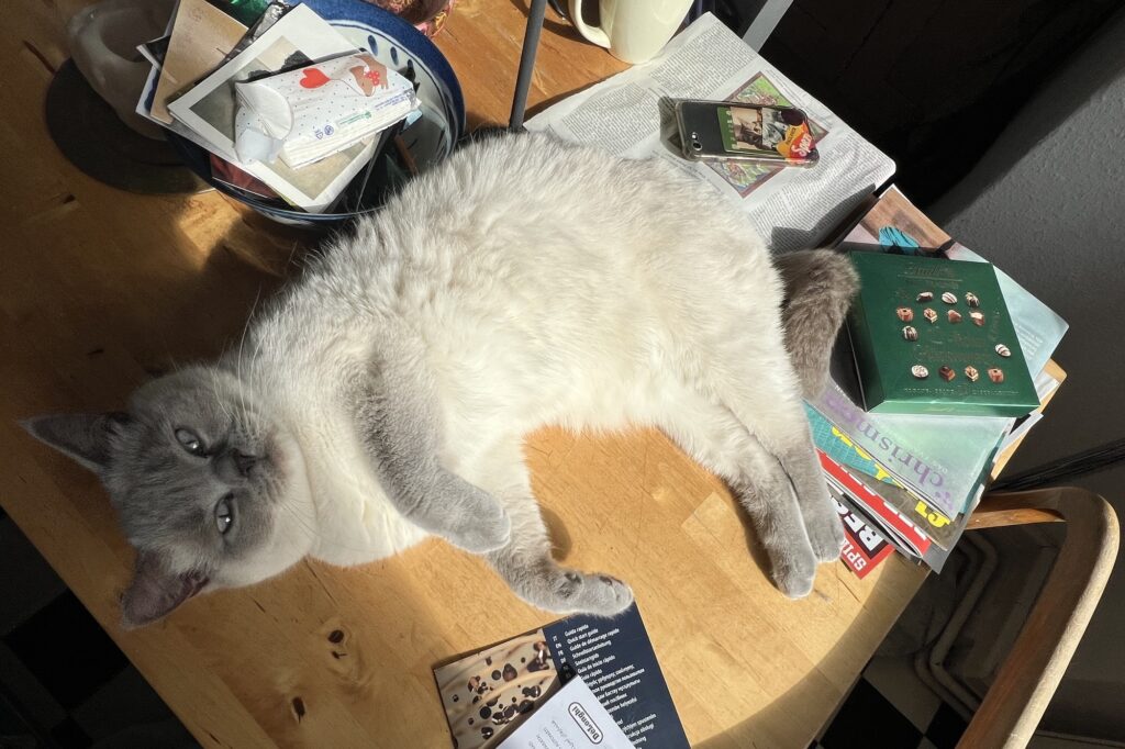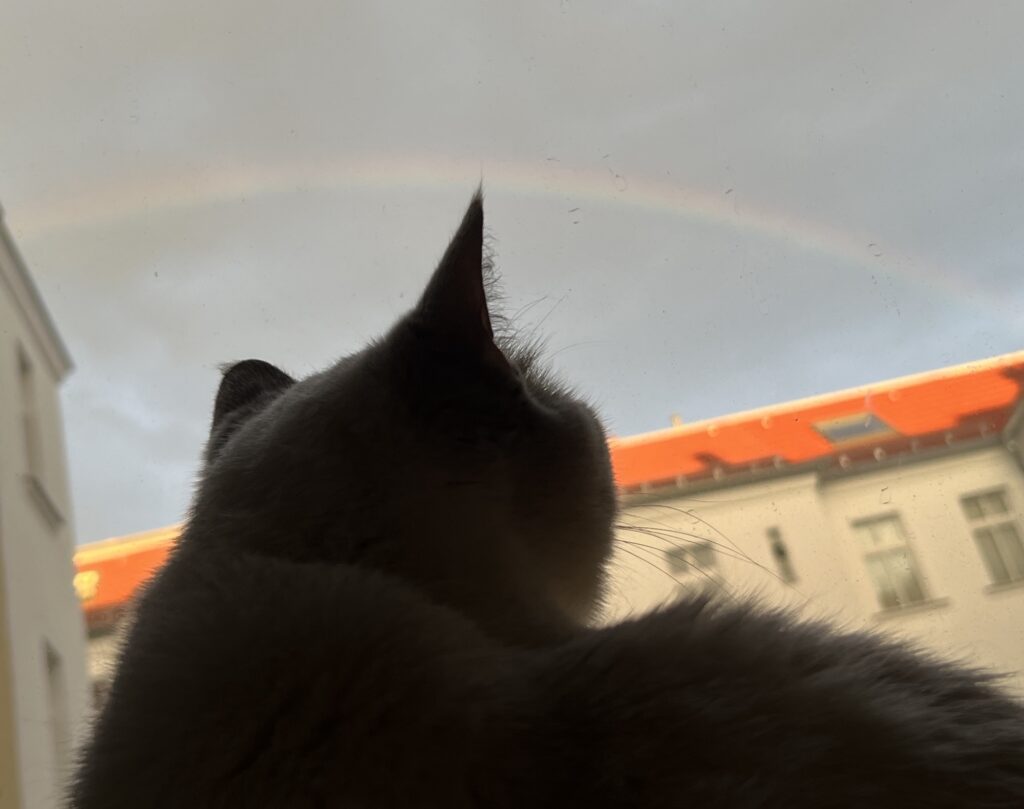 Dien Erlösung. Denke ich so. Sollte heute unbedingt sein. Am Geburtstag von Oma Lina. Der auf Ostersonntag fällt. Der Wiederauferstehung von Jesus. Und ich spüre Frieden in mir. Genieße die Ruhe. Die Einsamkeit. In meiner Küche. In der Sonne. Sagt der erleuchtete Hauptstadtkater. Der über euch wacht. Und jetzt: Seid demütig. Und chillt, Leute!