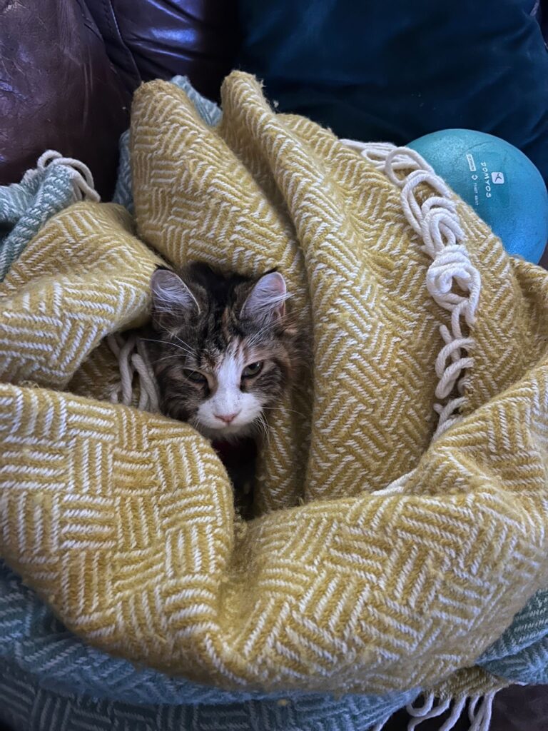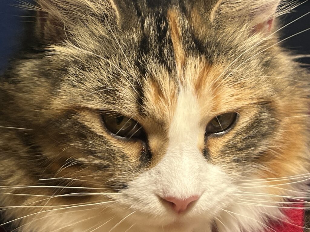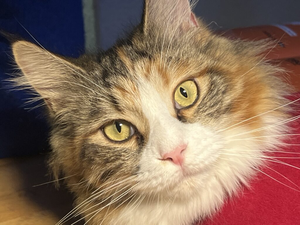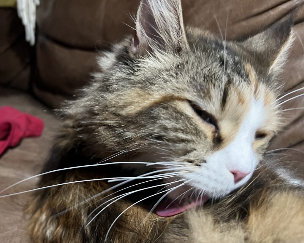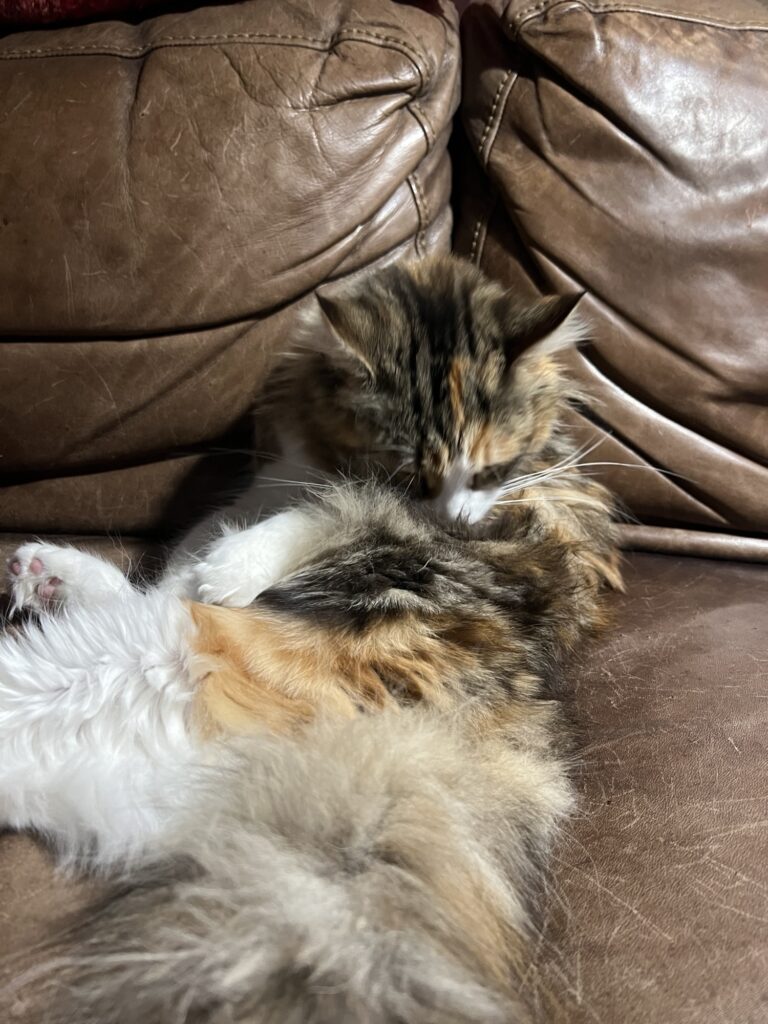 • Coco ist nach Eierstockvernichtung fast wieder die Alte: Springt auf mich. Leckt mein Ohr.