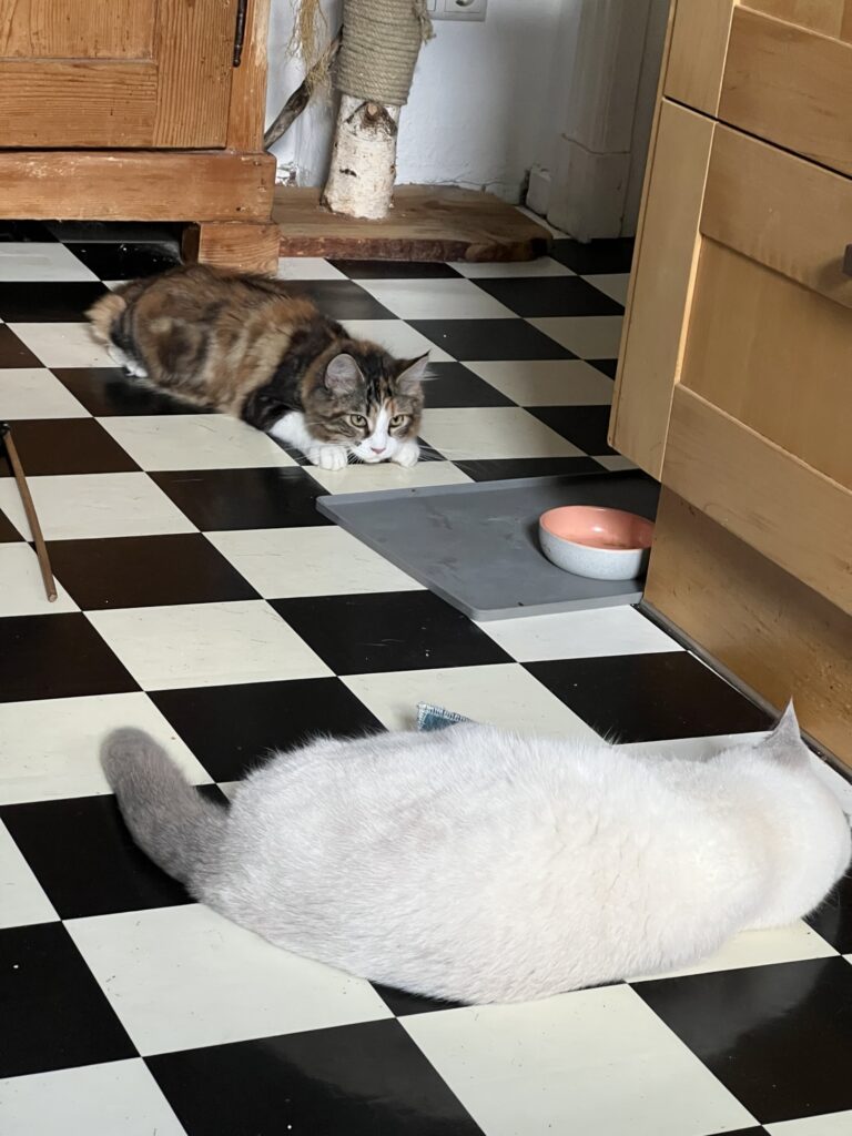 So viel Hass. Macht mich fertig. Um mich zu beruhigen, muss ich Coco beobachten. Sie ist entspannt. Schnurrt und chillt. Und ich merke, wie sich dieser Vibe auf mich überträgt. Wer chillt, entwickelt Hoffnungen. Sagt der zweifelnde Hauptstadtkater. Der über euch wacht. Und jetzt: Seid lieb zu euren Nächsten. Und chillt.