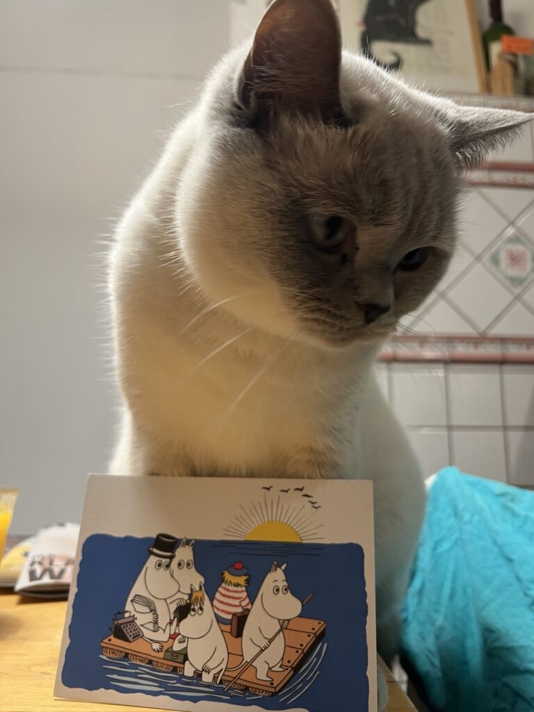 Und sehe, dass Coco es sich auf dem Abwasch bequem macht. Liegt auf dem Abtrockenhandtuch. Zwischen Kaffee-Siebträger und Reibe. Mit kirrem Blick. Allzeit bereit zum wilden Spiel. Pubertier eben. Sagt der erwachsene Hauptstadtkater. Der über euch wacht. Und jetzt: Chillt, Leute.