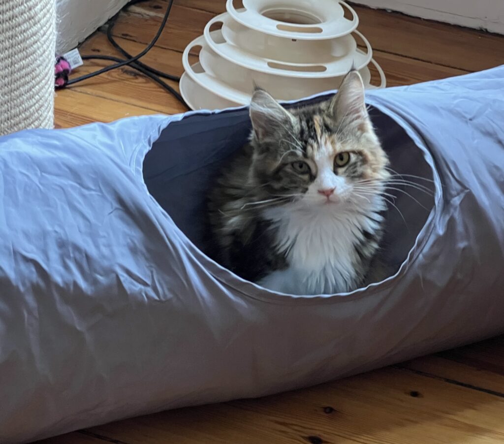 Tja, dann jage ich mal Coco. Spüre mich. Bin Kater. Ganz sicher. Jung. Wild. Und nicht alt. Hole den Stofflappen, den Coco apportiert hatte. Bin gewiss, dass ich schnell geblieben bin. Sagt der gewissenhafte Hauptstadtkater. Der über euch wacht. Und jetzt, Leute: Chillt!