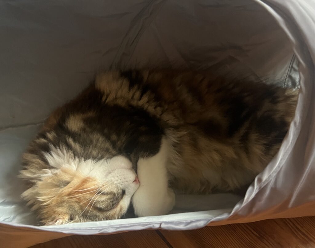 Bislang dachte ich auch, Katzen seien Katzen – und hätten keine Hunde-Attitüden. Auch diese Gewissheit löst sich auf. Wie Köter, so liebt Coco Wasser. Und nun apportiert sie auch noch. Wie ein Hund. Stoffbündel. Federrasseln. Spielzeugmäuse. Die meine Bruna wirft. Coco jagt hinterher. Nimmt es auf. Trägt es dann in der Schnauze zurück. Zu meiner Bruna.