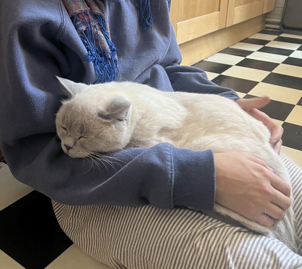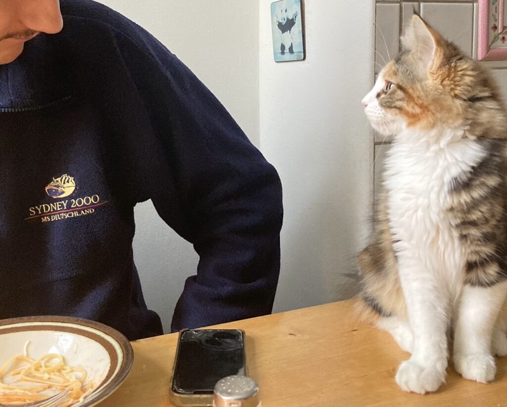 Und so dulde ich, dass meine Bruna mir meine Nase knetet. Kneift. What a feeling. Ich spüre mich. Und die Welt. Schwebe. Das ist real. Sagt der Hauptstadtkater. Der über euch wacht. Chillt.