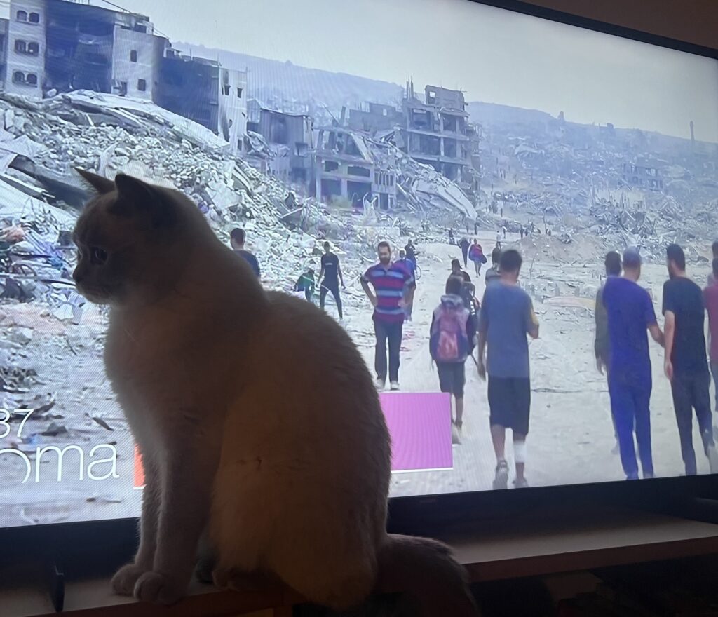Wenn ich wegschwebe, ist es so nice: Denn ich muss nicht den Schwachsinn von Trump inhalieren. Der erst in seinem „Friedensplan“ auf die Entwaffnung der Hamas besteht. Und der dann sagt, die Hamas müsse erst mal die Kontrolle über den Gazastreifen haben, um ein Chaos zu verhindern – und im Kampf mit rivalisierenden Banden natürlich auch Waffen braucht.