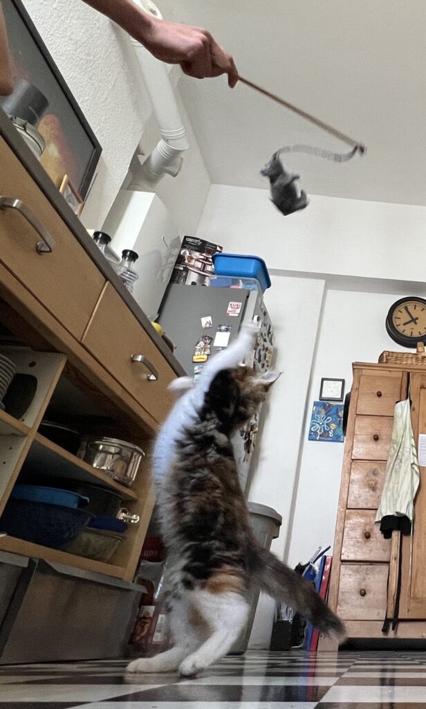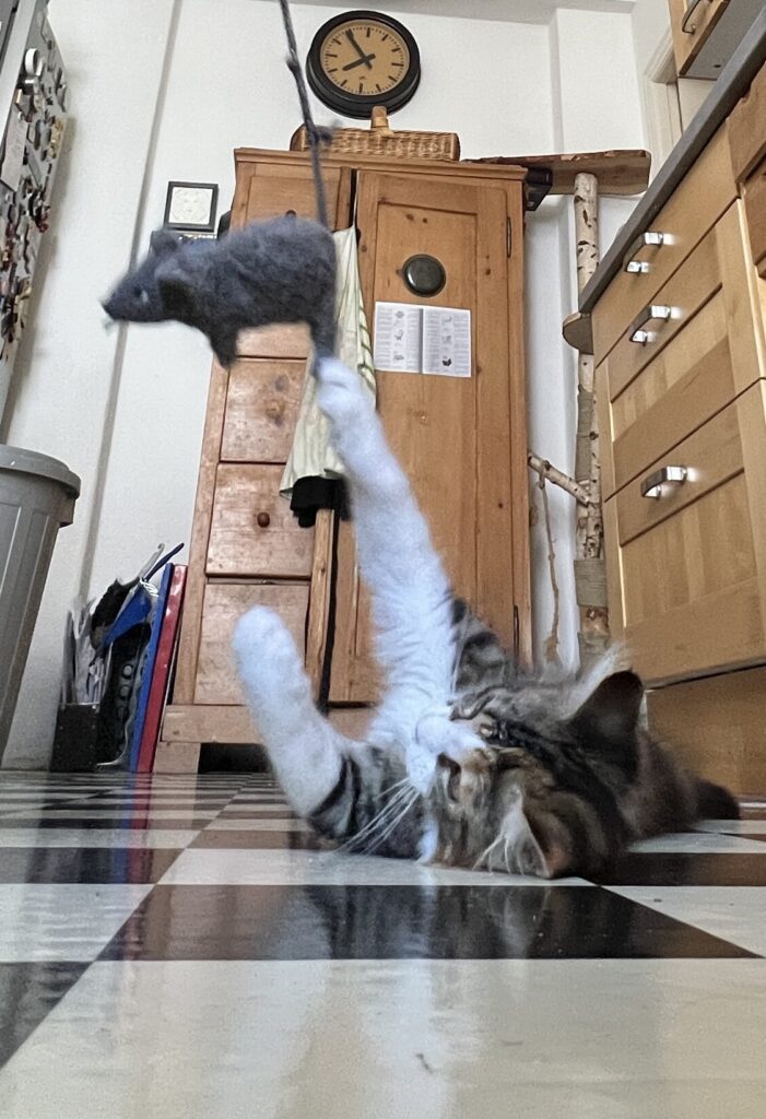 Meine Trance wird abrupt beendet. Coco springt neben mich. Und nimmt meinen wedelnden Schweif ins Visier. Immer wieder haut sie dagegen. Beißt. Ich finde es ätzend. Will aber keine Eskalation. Und denke nur so: Meine Hoffnung lasse ich mir nicht nehmen. Blicke in den düsteren Himmel: Und sehe sie, will sie sehen, die weiße Taube, die mich umarmt. Sorry, für den schwülstigen Kitsch. Aber heute fühle ich mich nun mal so.