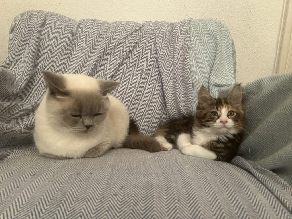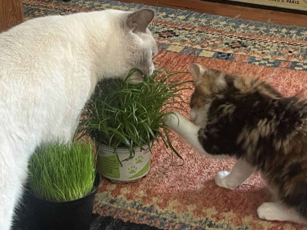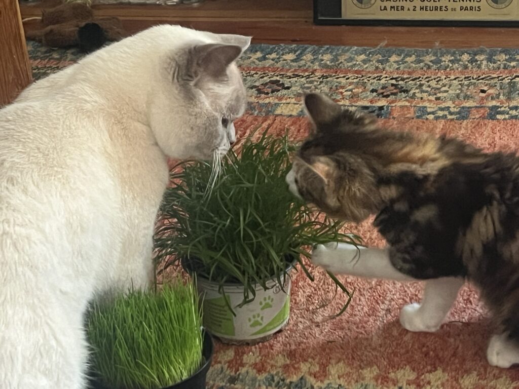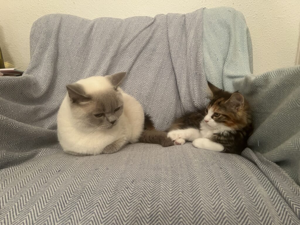 Wir bilden eine Phalanx, das so called Katzenbündnis Chaco. Felix traut sich nicht, uns zu verjagen. Weil wir zu zweit sind. Gemeinsam. Sind. Wir. Stark. Eben.