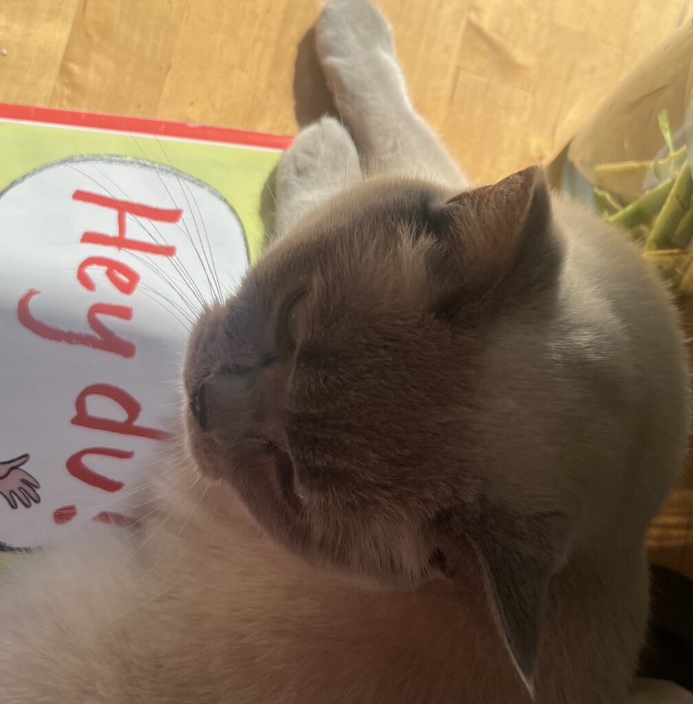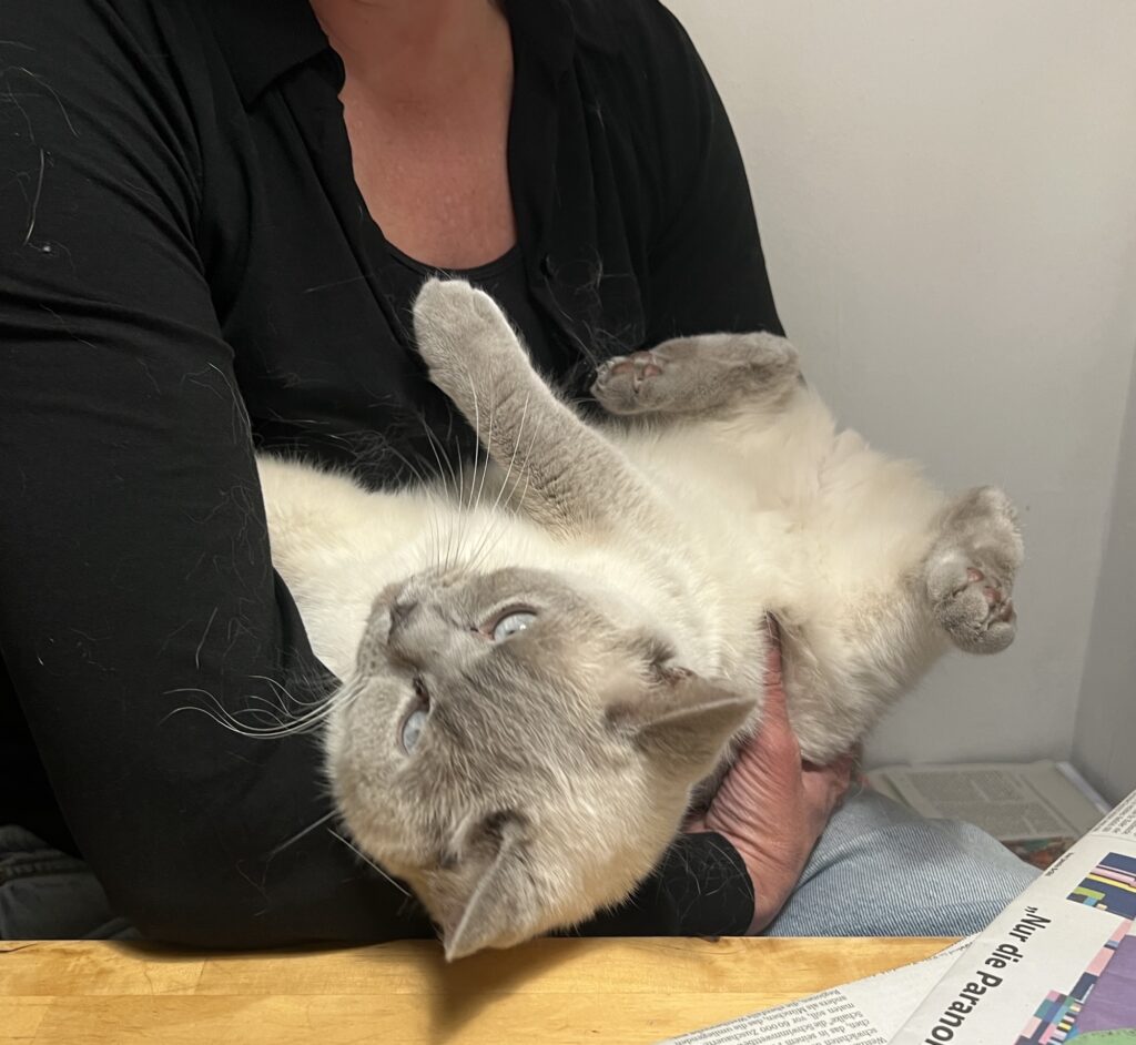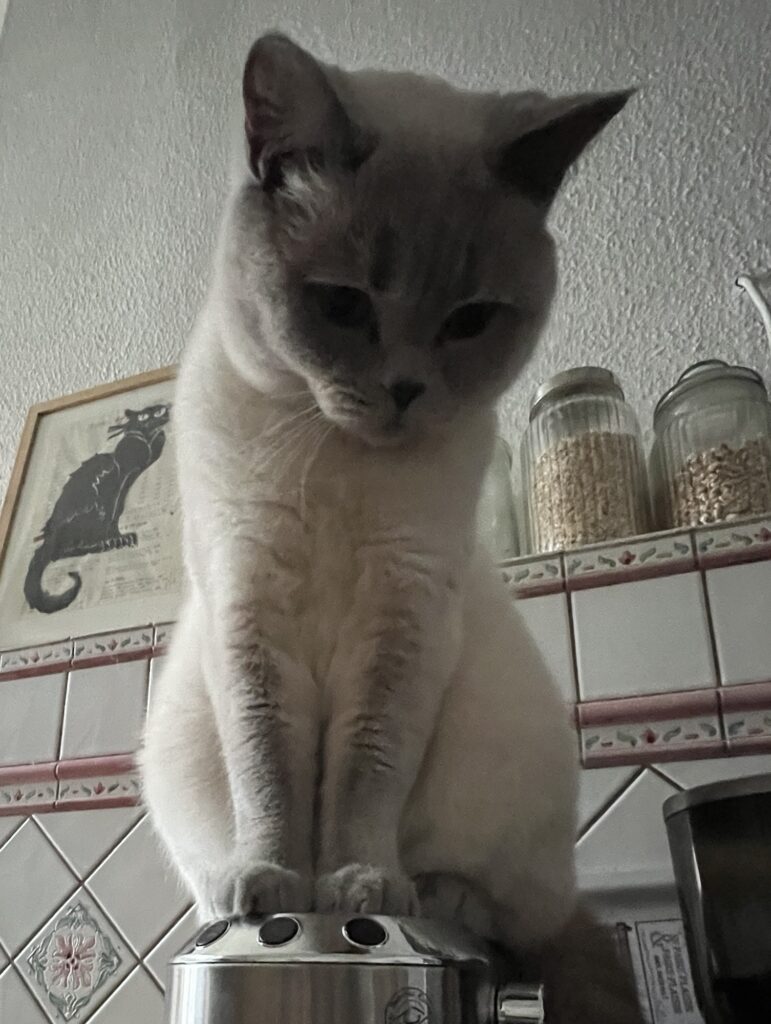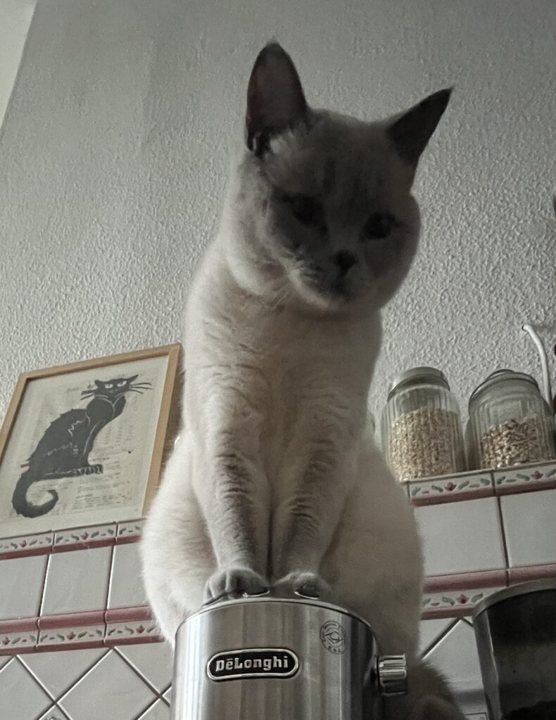 Pedanterie pur. Ich dränge mehrfach und ignoriere ihre Abwehr. Bis sie nachgibt. Wie immer. Und ich spüre. Wie sie sich entspannt. So nice. Für sie. Dialog. Kommunikation. Auch ohne Worte. Durch Verhalten. Blicke. Das funktioniert nicht nur bei Artgenossen, sondern auch mit Lieblingsmenschen. Mit meiner Laura beispielsweise sind unsere intimen 38 Minuten und 26 Sekunden Kuscheln wie ein Antidepressivum. Im Chaos. Nur besser.