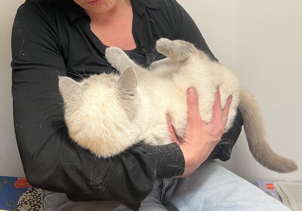 Vertrauen, Wärme, Zuneigung. Spüre ich zu meinen Menschen. Und will mit ihnen zusammen chillen. Das ist Leben. Für mich. Ich also platziere mich auf dem Schoß meiner Laura. Versuche es zumindest. Denn sie wehrt ab. Ernsthaft: behauptet, sie wolle nicht so aussehen wie ich. Was übersetzt so viel bedeutet wie, dass sie die drei Härchen, die ich beim Kuscheln verliere, nicht auf ihren Klamotten haben will.