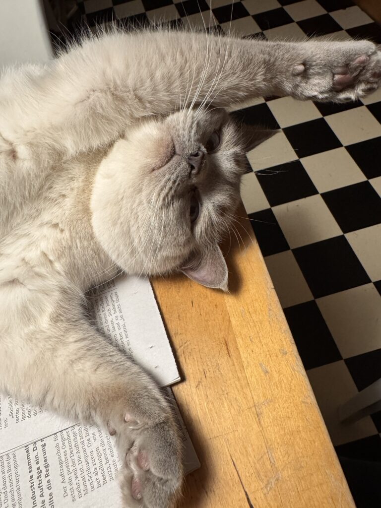 Muss da tatsächlich eine dämliche Katze spazieren, die eh nicht lesen kann? Frage ich mich. Ermahne mich dann zur Lockerheit. Von der Muse geküsste Literaturkatzen soll es ja geben. Und Harry Potter und sie haben geknutscht. Ich bin Augenzeuge. Sagt der open-minded Hauptstadtkater. Der über euch wacht. Und jetzt: Erwartet das Unerwartbare. Und chillt, Leute!