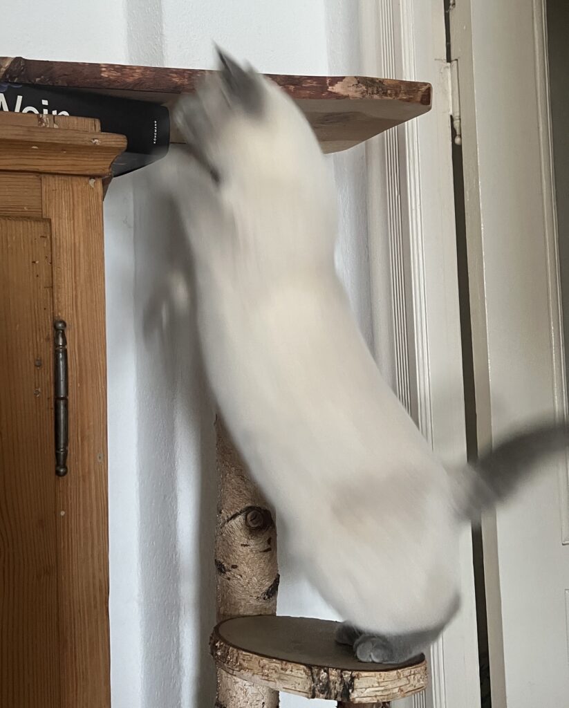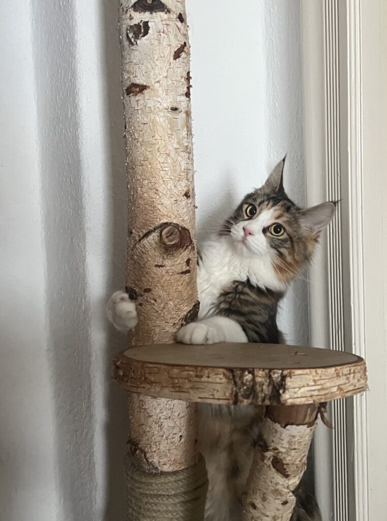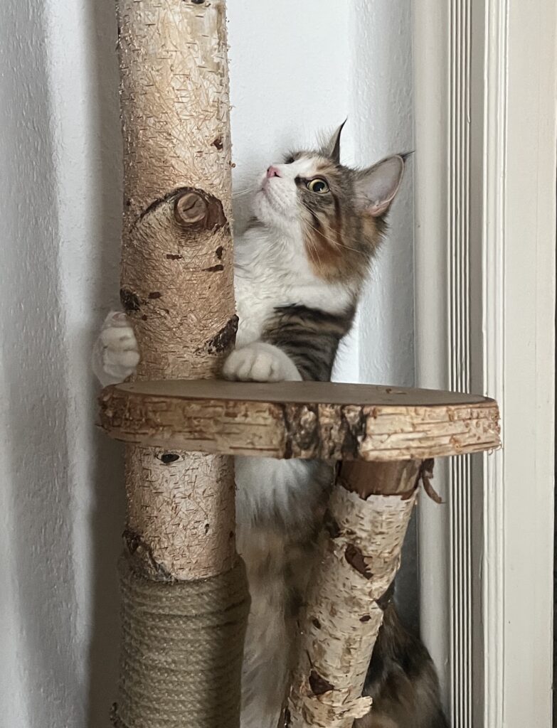 Da wo ich bin, ist oben. Deswegen liebe ich meinen Kratzbaum. Der mich in die Höh’ bringt. Ganz oben, da fühle ich mich fast so etwas wie allmächtig. Weil ich den absoluten Überblick habe. Bislang jedenfalls war das so. Seit kurzem aber hat auch Coco mein Revier im Revier entdeckt. Und so ist es nun zwischen uns ein Wettrennen. Wer zuerst oben ist.