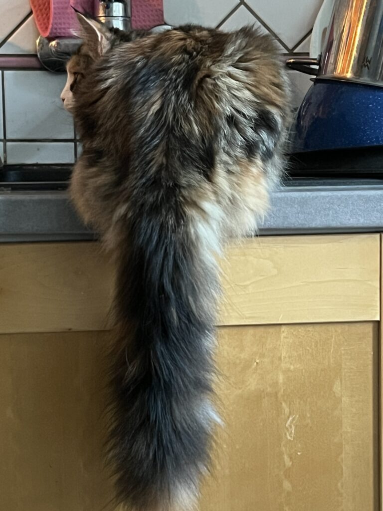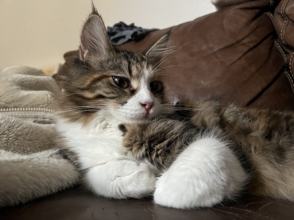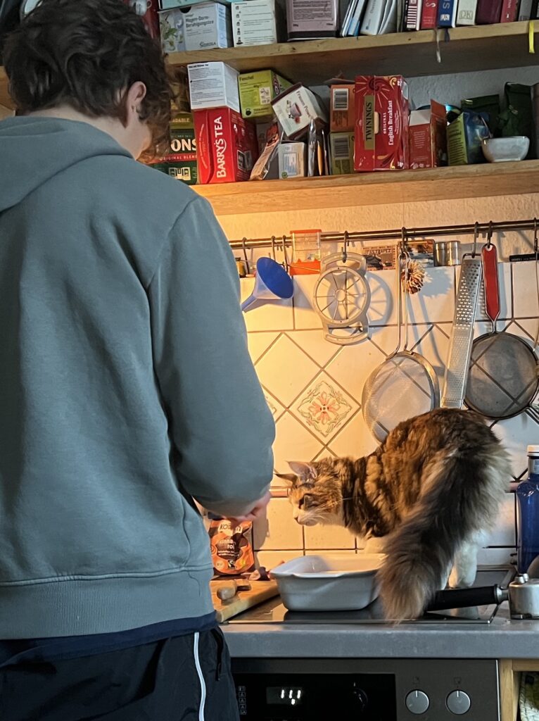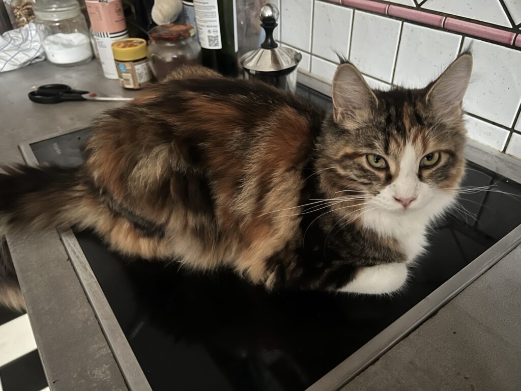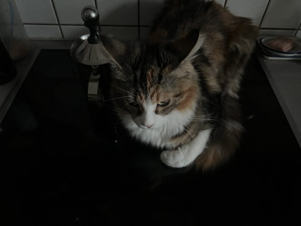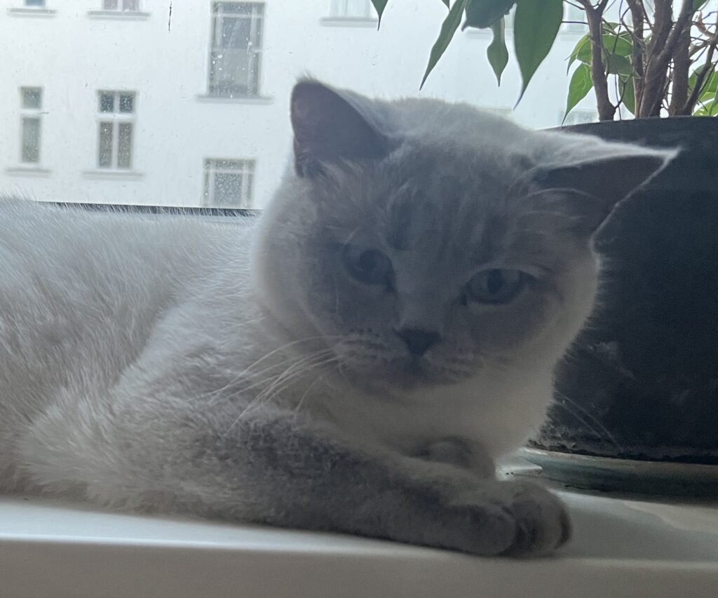 Welch Hybris. Ich blicke hoch. Aufs Sofa. Zu Coco. Die da chillt. Auf meinem Kuschelplatz. Mit krassem Blick. Mafiamäßig. Denke ich so.