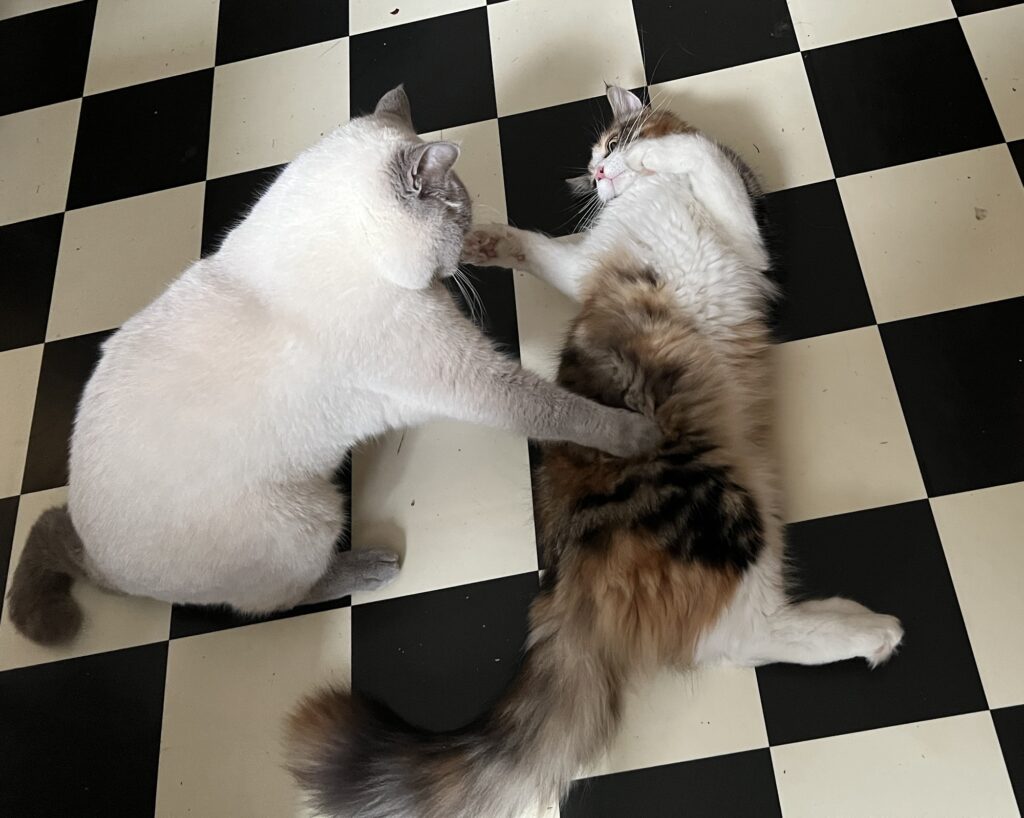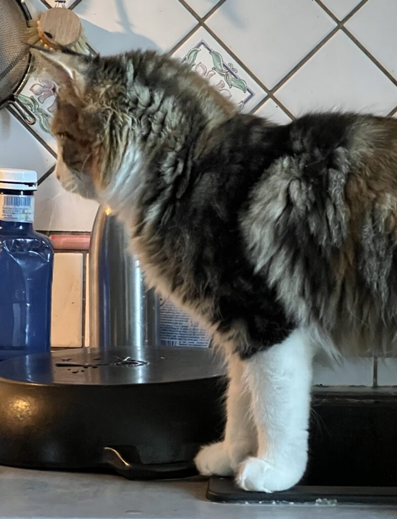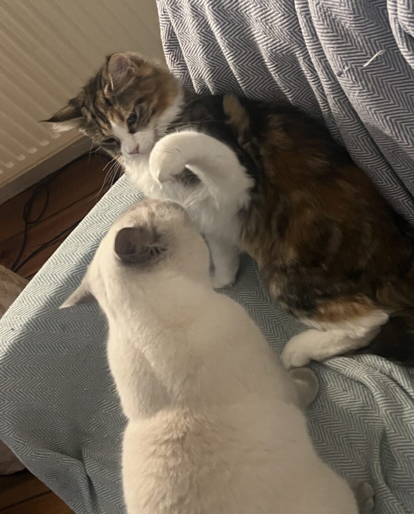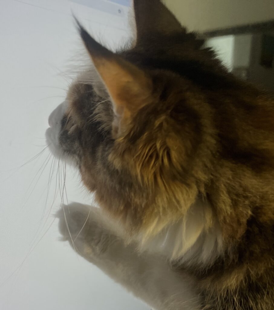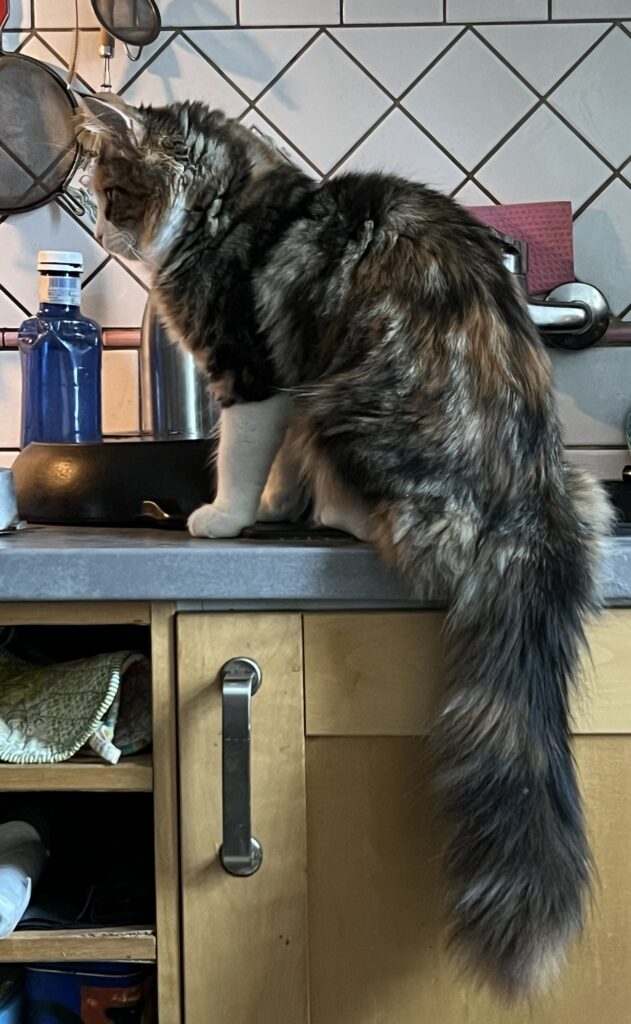 Welch Hybris. Ich blicke hoch. Aufs Sofa. Zu Coco. Die da chillt. Auf meinem Kuschelplatz. Mit krassem Blick. Mafiamäßig. Denke ich so.