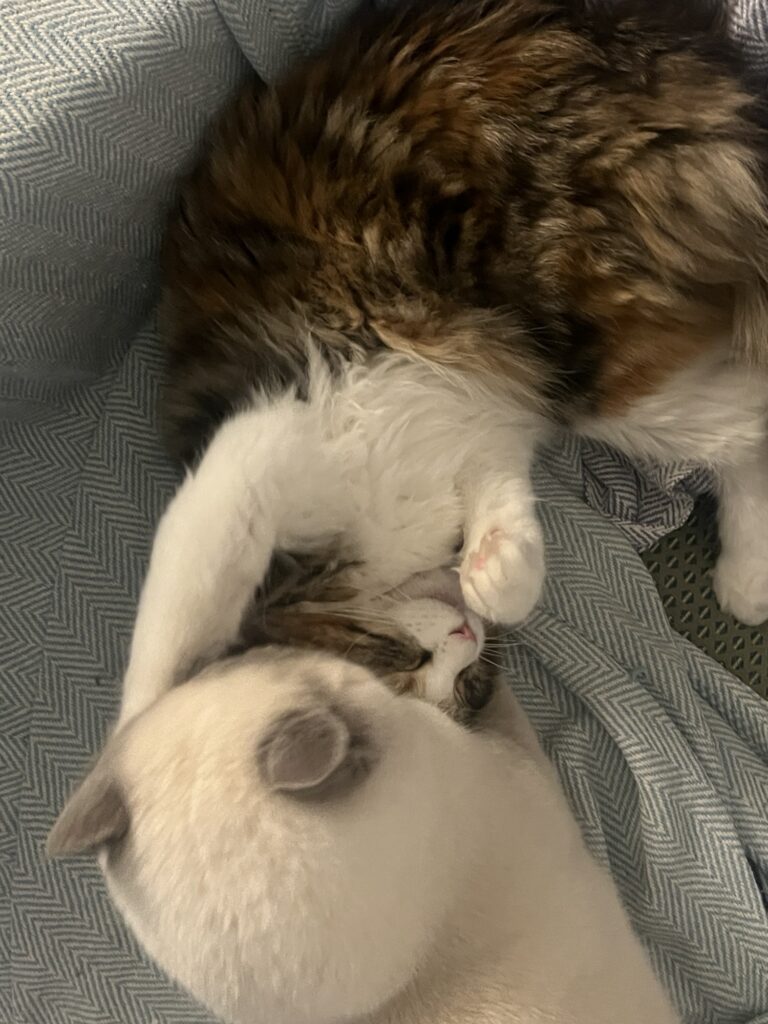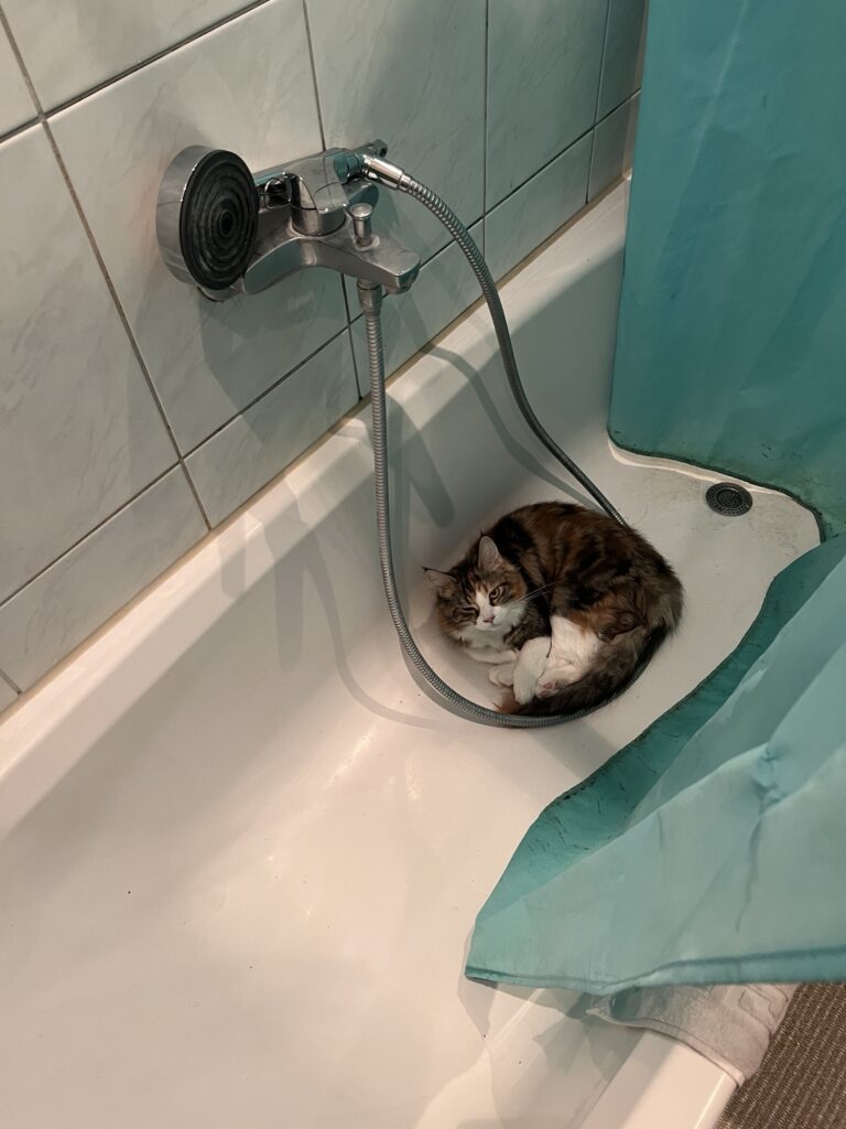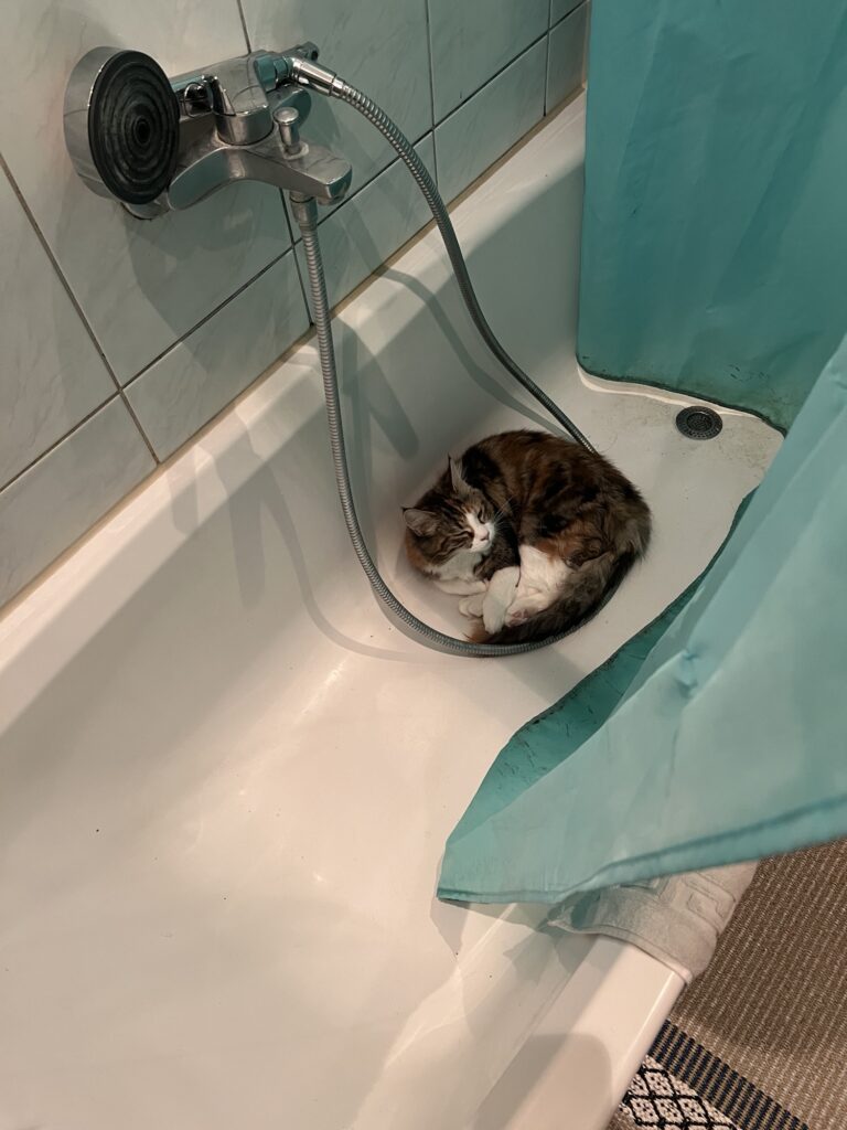 Und ich denke so: Schlechter Mafia-Film. Unverschämt. Coco dreht sich auf ihren Rücken. Auf meinem Kuschelplatz. Mafiös eben.