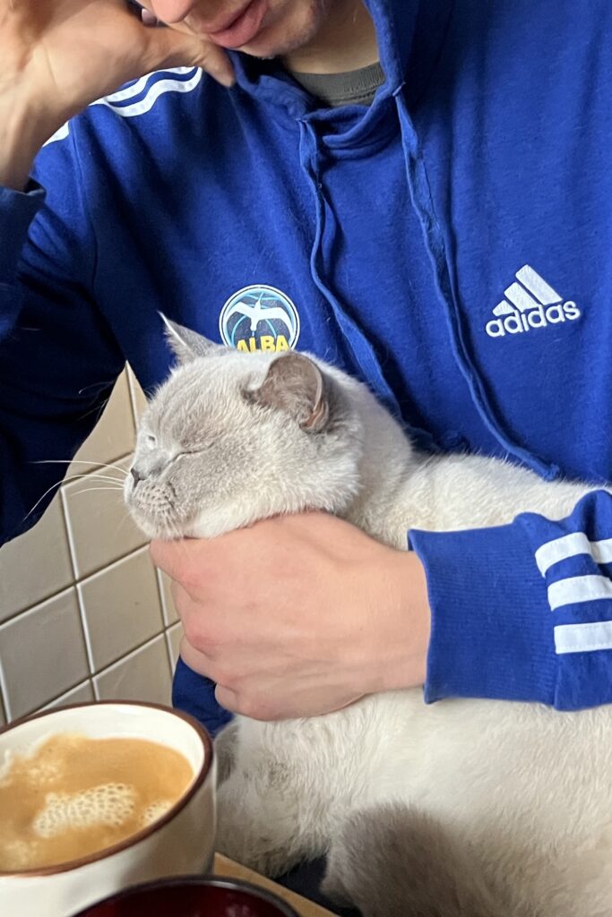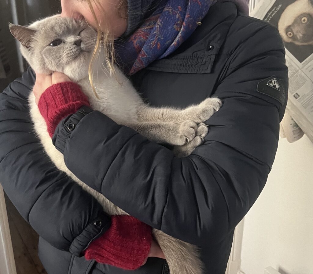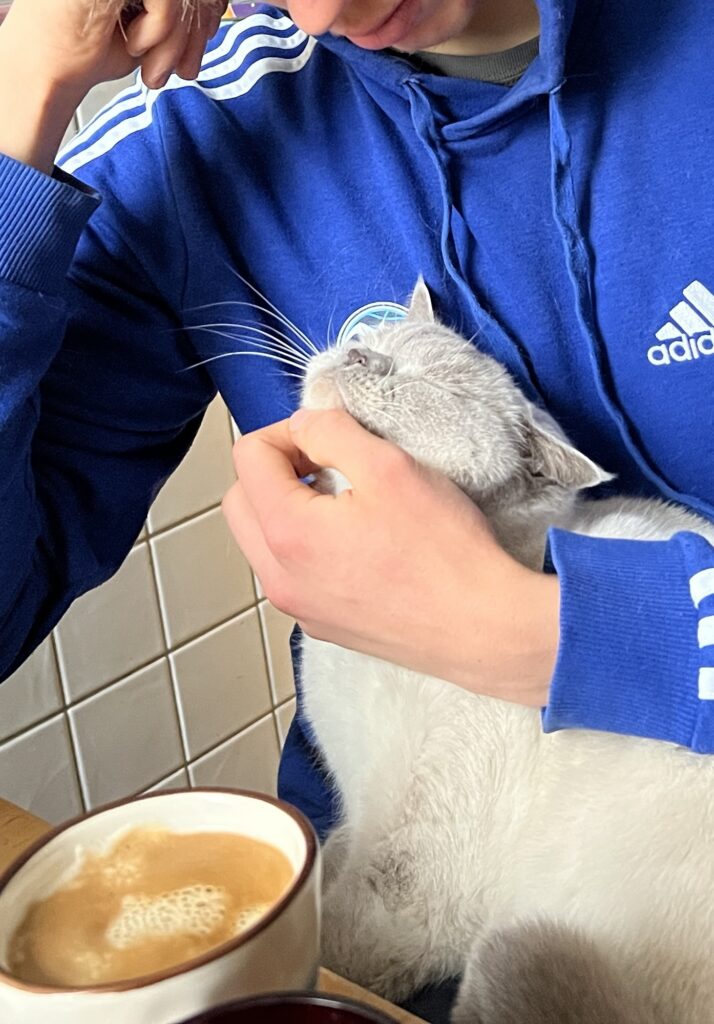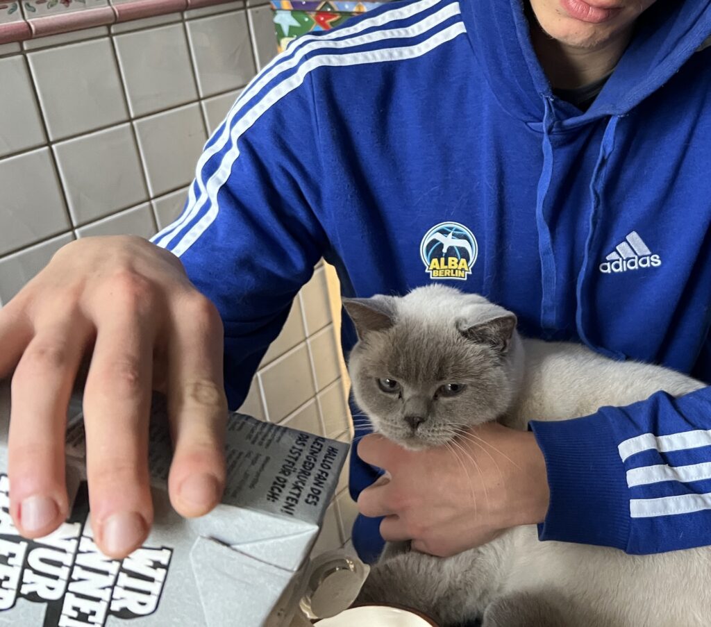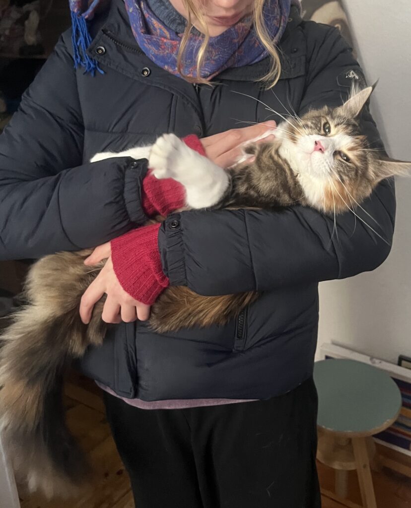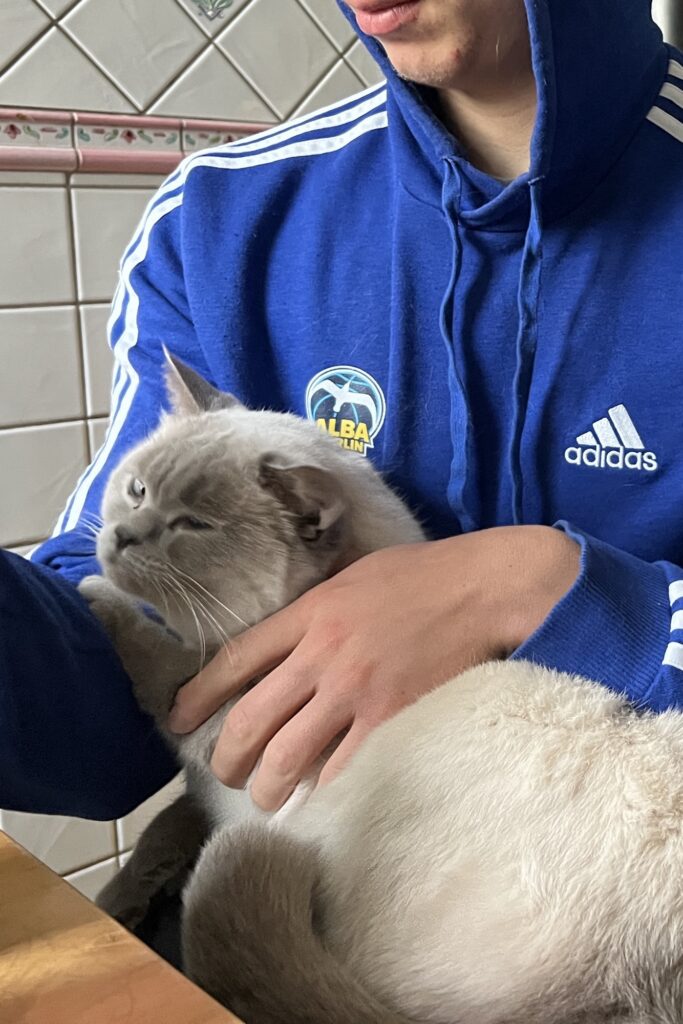 Denke ich so. Und spüre die Schlappen auf mir. Fürs Foto. Das Felix schießen will. Ich halte still. O weia. Menschen. Sagt der veränderte Hauptstadtkater. Der über euch wacht. Und jetzt: Wagt den Change. Und chillt, Leute